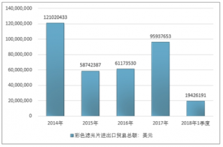 2016年我國(guó)彩色濾光片進(jìn)出口貿(mào)易總額61173530美元,2017年進(jìn)出口貿(mào)易總額95937653美元;2018年1季度進(jìn)出口貿(mào)易總額19426191美元。
