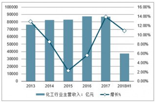 2013-2018年H1中國化工行業(yè)主營收入及增長走勢