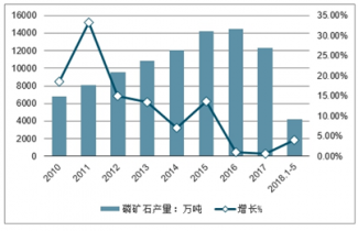 2010-2018年5月中國磷礦石產(chǎn)量及增長走勢