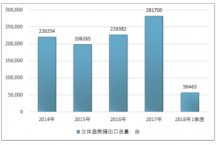 2016年我國立體顯微鏡出口總量226382臺 ,2017年出口總量281700臺 ;2018年1季度出口總量56463臺 。