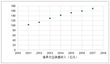 2010-2018年中國(guó)漁具行業(yè)市場(chǎng)銷售收入情況