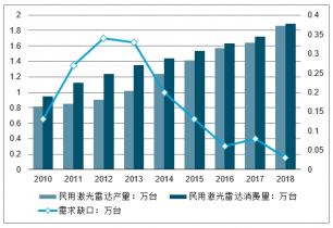 2010-2018年中國民用激光雷達產(chǎn)銷情況