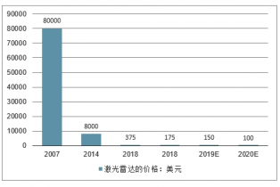 圖表 30:2013-2019年激光雷達價格走勢分析