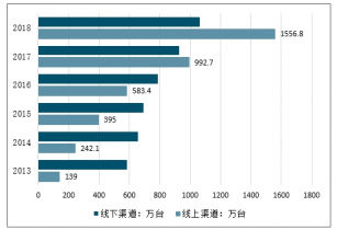 2013-2018年行車記錄儀不同渠道銷售量走勢