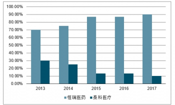 2017年國內(nèi)碘佛醇市場規(guī)模~15億元,增速略超40%。2013-2017年CAGR為15%,增速較快。國內(nèi)僅有恒瑞一家仿制,于2006年上市,目前已超過原研Tyco占據(jù)最大市場份額。預(yù)計(jì)國內(nèi)市場有望繼續(xù)保持穩(wěn)健快速增長。