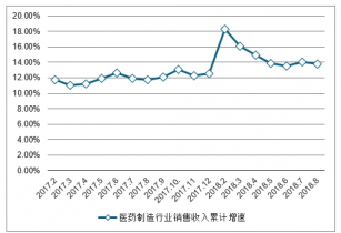 2017-2018年8月中國醫(yī)藥制造行業(yè)銷售收入累計(jì)增速走勢