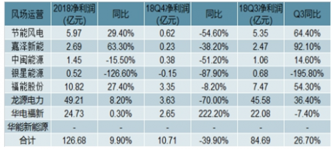 2018年風電行業(yè)各細分板塊毛利率均出現(xiàn)下降,整機商/主軸/風塔/葉片/鍛鑄件等/風電場運營分別下滑2.67/2.08/1.77/1.20/4.79/0.26pct,整機商的毛利率下滑主要出現(xiàn)在第四季度,下滑8.59pct;風電場運營板塊的毛利率也主要在四季度出現(xiàn)下滑,下滑5.19pct;鍛鑄件等零部件板塊的毛利率下滑主要出現(xiàn)在第三季度,下滑6.86pct;其余三個子板塊在三四季度毛利率均有所下滑。毛利率下滑主要原因是上游大宗商品特別是鋼材價格上漲,導致成本端增加。運營商毛利率下滑最少只有-0.26個pct,是因為銷售收入主要與電價和利用小時數(shù)相關,銷售成本主要是折舊費用,而三者相對比較穩(wěn)定。