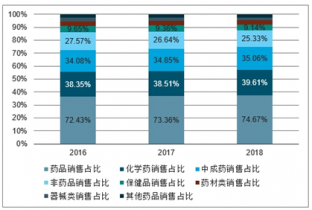 2016-2018年零售藥店細(xì)分藥品銷售占比情況