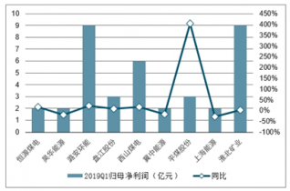 2019年一季度焦煤為主的公司歸母凈利潤(rùn)及同比增長(zhǎng)走勢(shì)