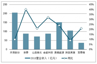 2018年焦炭為主的公司營業(yè)收入及同比變化
