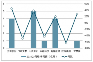 2019年一季度焦炭為主的公司歸母凈利潤及同比增長走勢