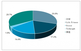 2017年,全球健身器材市場近108億美元,中國制造占約53%。但大部分體育器材廠家主要通過為國際知名品牌貼牌加工參與國際市場競爭。全球健身器材產(chǎn)業(yè)品牌集中度高。