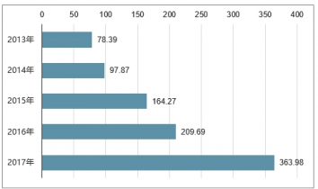 2013-2017年中國無線耳機產(chǎn)值走勢(單位:億元)