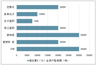 維生素E(VE)全球產(chǎn)能格局(噸)