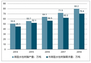2014-2018年我國(guó)高吸水性樹(shù)脂產(chǎn)銷(xiāo)量走勢(shì)