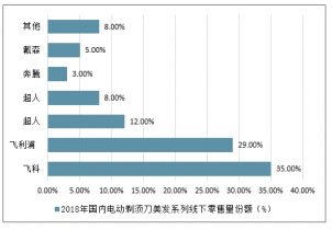 2018年國內(nèi)電動剃須刀美發(fā)系列線下零售量份額(%)