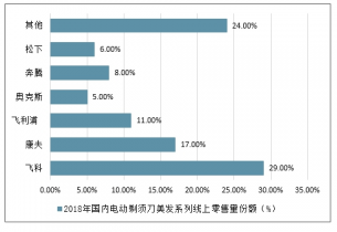 2018年國內(nèi)電動剃須刀美發(fā)系列線上零售量份額(%)