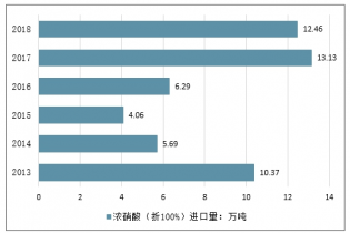 圖表 2014-2019年中國濃硝酸進口數(shù)量分析