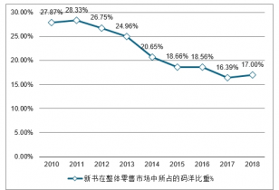 2010-2018年中國(guó)新書在整體零售市場(chǎng)中所占的碼洋比重情況