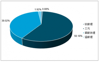2018 年三元裝機(jī)占比 58.18%。從電池類型來看,2018 年 56.98Gwh 總裝機(jī)量中,NCM 三元電池以 33.1 GWh 占比 58.18%, 排在首位,同比增加 102.97%;磷酸鐵鋰電池以 22.2GWh 占比 39.02%排名第二,同比增加 22.52%;錳酸鋰電池以 1.09GWh 占比 1.92%,排在第三位;鈦酸鋰電池以 0.5GWh 占比 0.88%,排在第四。