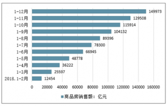 2018年1-12月中國商品房銷售金額