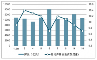 2019年1-10月全國房地產(chǎn)開發(fā)投資額及增速走勢