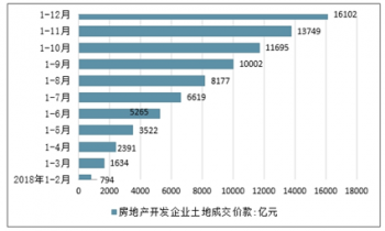 2018年1-12月中國房地產(chǎn)開發(fā)企業(yè)土地成交價款情況