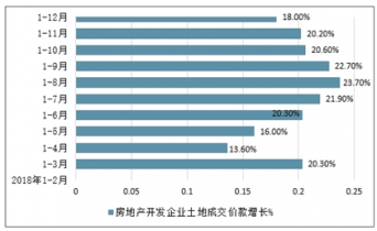 2018年1-12月中國房地產(chǎn)開發(fā)企業(yè)土地成交價款增長情況