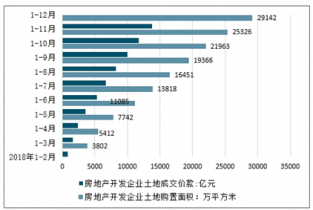 2018年1-12月中國(guó)房地產(chǎn)開(kāi)發(fā)企業(yè)土地購(gòu)置面積及房地產(chǎn)開(kāi)發(fā)企業(yè)土地成交價(jià)款情況