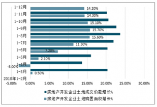 2018年1-12月中國(guó)房地產(chǎn)開(kāi)發(fā)企業(yè)土地購(gòu)置面積增長(zhǎng)及房地產(chǎn)開(kāi)發(fā)企業(yè)土地成交價(jià)款增長(zhǎng)情況