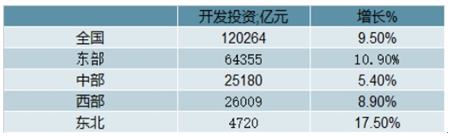 2019年1-12月,全國房地產(chǎn)開發(fā)投資120264億元,比上年增長9.5%,增速比1-11月份回落0.2個百分點,比上年同期提高2.5個百分點。