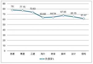 2019年建筑年報(bào)細(xì)分行業(yè)負(fù)債水平比較