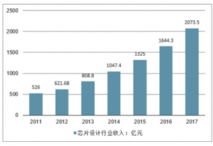我國(guó)芯片設(shè)計(jì)產(chǎn)業(yè)迅猛發(fā)展,年均增速在20以上,2017年我國(guó)芯片設(shè)計(jì)行業(yè)收入達(dá)2073.5億元。