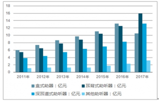 2011-2017年我國不同類型助聽器消費金額對比