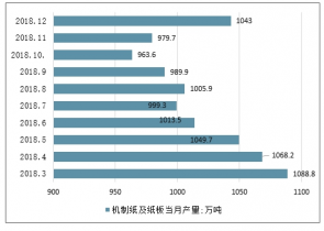 2018年1-12月中國(guó)機(jī)制紙及紙板當(dāng)月產(chǎn)量走勢(shì)