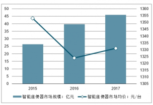 2017年中國國內(nèi)智能馬桶銷量為345萬臺,中國智能馬桶市場規(guī)模從2015年的26.38億元增長至2017年的45.92億元。