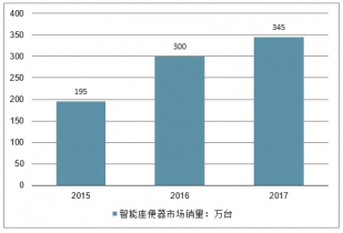 2017年中國智能座便器市場銷量345萬個(gè),同比2016年的300萬個(gè)增長了15%。