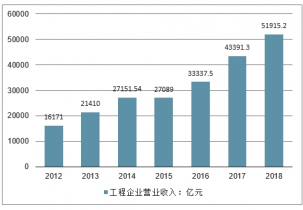 2019年中國工程勘察設計企業營業收入總計51915.2億元。其中,工程勘察收入914.8億元,占營業收入的1.8%;工程設計收入4609.2億元,占營業收入的8.9%;工程總承包收入26046.1億元,占營業收入的50.2%;其他工程咨詢業務收入657.3億元,占營業收入的1.3%。