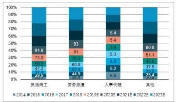 人力資源外包各細(xì)分板塊市場(chǎng)規(guī)模及預(yù)測(cè)(十億)