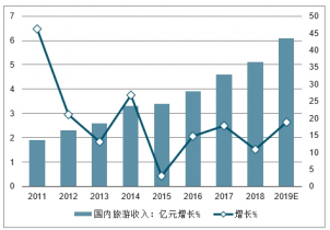 2011-2019年中國國內(nèi)旅游收入及增長走勢