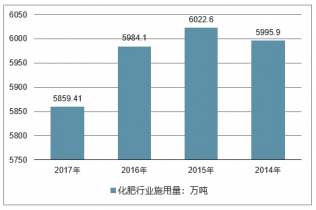 2016年我國化肥行業(yè)施用量約5984.1萬噸, 2017年我國化肥行業(yè)施用量約5859.41萬噸。