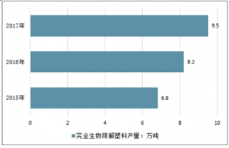 2015-2017年中國(guó)完全生物降解塑料行業(yè)產(chǎn)量情況