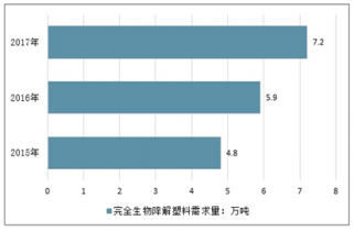 2015-2017年中國(guó)完全生物降解塑料行業(yè)需求量情況