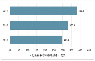 2017年我國化合物半導(dǎo)體行業(yè)市場規(guī)模約381.3億元,同比2016年的330.4億元增長了15.41%。
