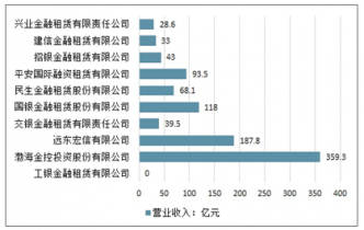 2017年末租賃行業(yè)資產(chǎn)規(guī)模排名Top10的營業(yè)收入