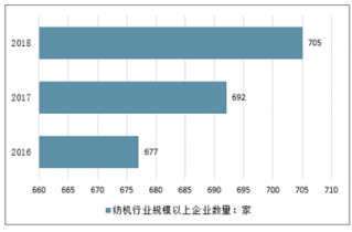 2019年,中國紡機(jī)行業(yè)規(guī)模以上企業(yè)數(shù)量約有705家,較2017年增加了13家。
