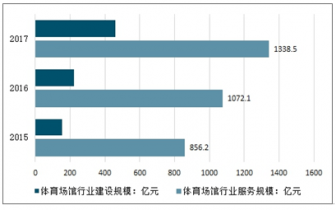 2015-2017年中國(guó)體育場(chǎng)館行業(yè)服務(wù)規(guī)模及行業(yè)建設(shè)規(guī)模情況