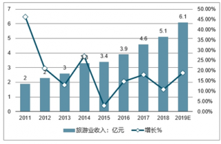 2011-2019年中國(guó)旅游業(yè)收入及增長(zhǎng)走勢(shì)