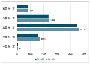 從文旅部公布的2017年第四季度與2019年前兩個(gè)季度我國(guó)通過(guò)省級(jí)審批的星級(jí)酒店變化情況看,有如下特征:第.一,除五星級(jí)酒店外,各星級(jí)酒店數(shù)量整體均呈下降趨勢(shì);五星級(jí)酒店從2017年第四季度的822家增加至2019年第二季度的825家,二星級(jí)和三星級(jí)酒店數(shù)量減少的最多,分別減少191家和224家。雖然酒店數(shù)量呈減少趨勢(shì),但從中高端酒店(三星級(jí)及以上)的占比情況看,中高端占比持續(xù)升高,2019年第二季度,中高端比例增加至82.39%,中高端布局加速。