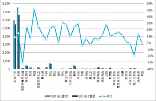 2019Q1化工子行業(yè)營業(yè)收入及同比情況